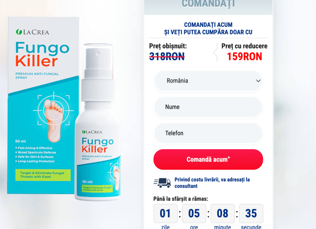 Spray antifungic FungoKiller recenzii împotriva frisonului, agravării, mirosului teribil și angoasei este deschis în locul său real. Puteți organiza spray-ul la un cost de avans rezonabil astăzi, fără stres asupra impacturilor opționale sau contraindicațiilor. Prezentările de ansamblu și evaluările despre FungoKiller lucrări sunt foarte înălțătoare și garantează o influență uimitoare post-tratament și rezultate dure.